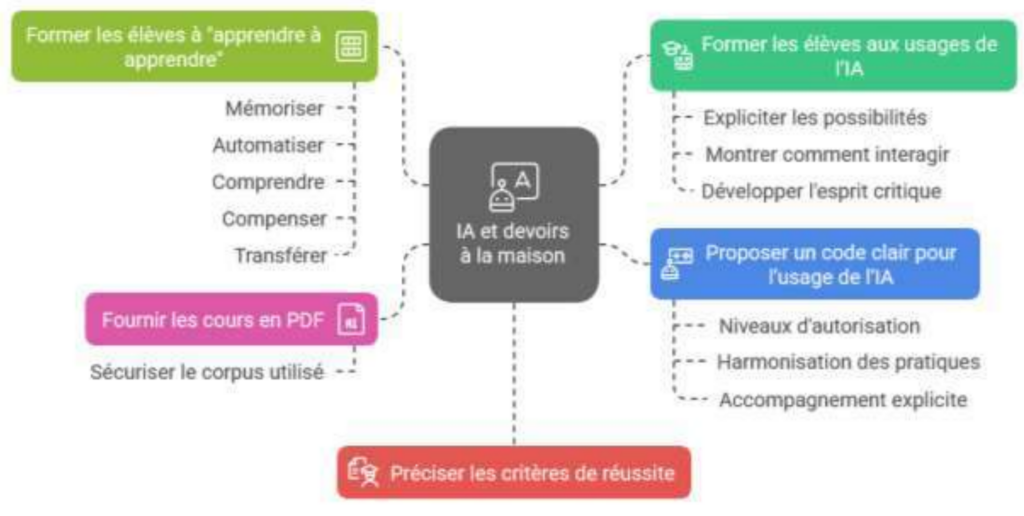 - « Encadrer l’utilisation de l’IA dans les devoirs à la maison », Groupe IA et Education, Académie de Paris, mai 2025